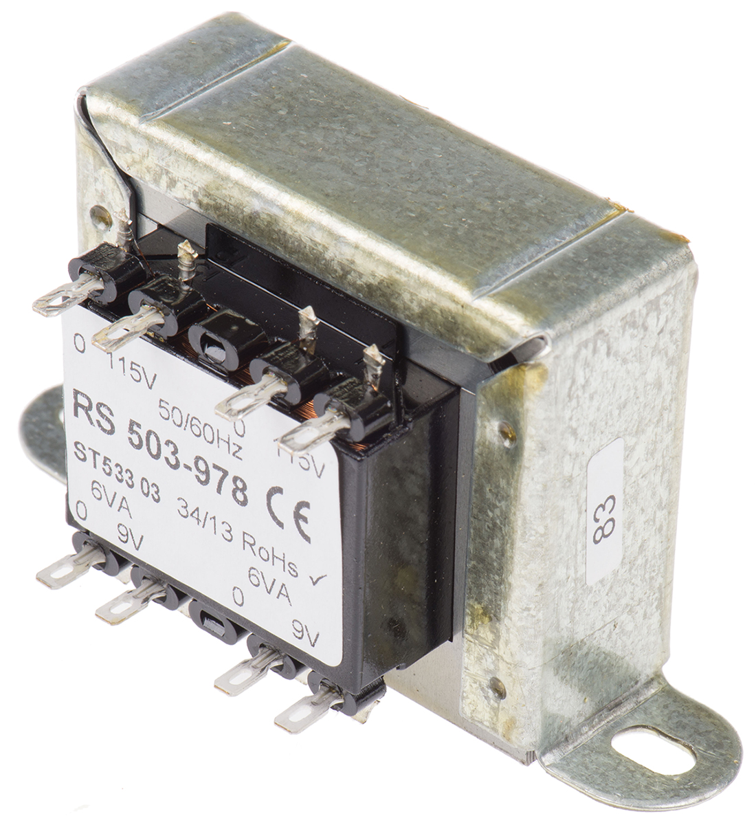 This is 12VA 2 Output Chassis Mounting Transformer 9V ac manufactured by RS Pro. The manufacturer part number is 503-978. Additionally, the product is supplied with 2 outputs. The given dimensions of the product include 59 x 50 x 50mm. The typical product's weight is 400g. It has about 115 v ac, 230v ac primary voltage rating . Its accurate length is 59mm. It carries 60hz of maximum operating frequency. The diameter of the fixing hole is 4.7 x 8.7mm. Furthermore, the product is 50mm wide. The product comes in 50mm depth. In addition, it has a secondary 9v ac voltage rating . It has a minimum 50hz operating frequency . The product is available in clamp mount configuration. Feature 12va of power rating.