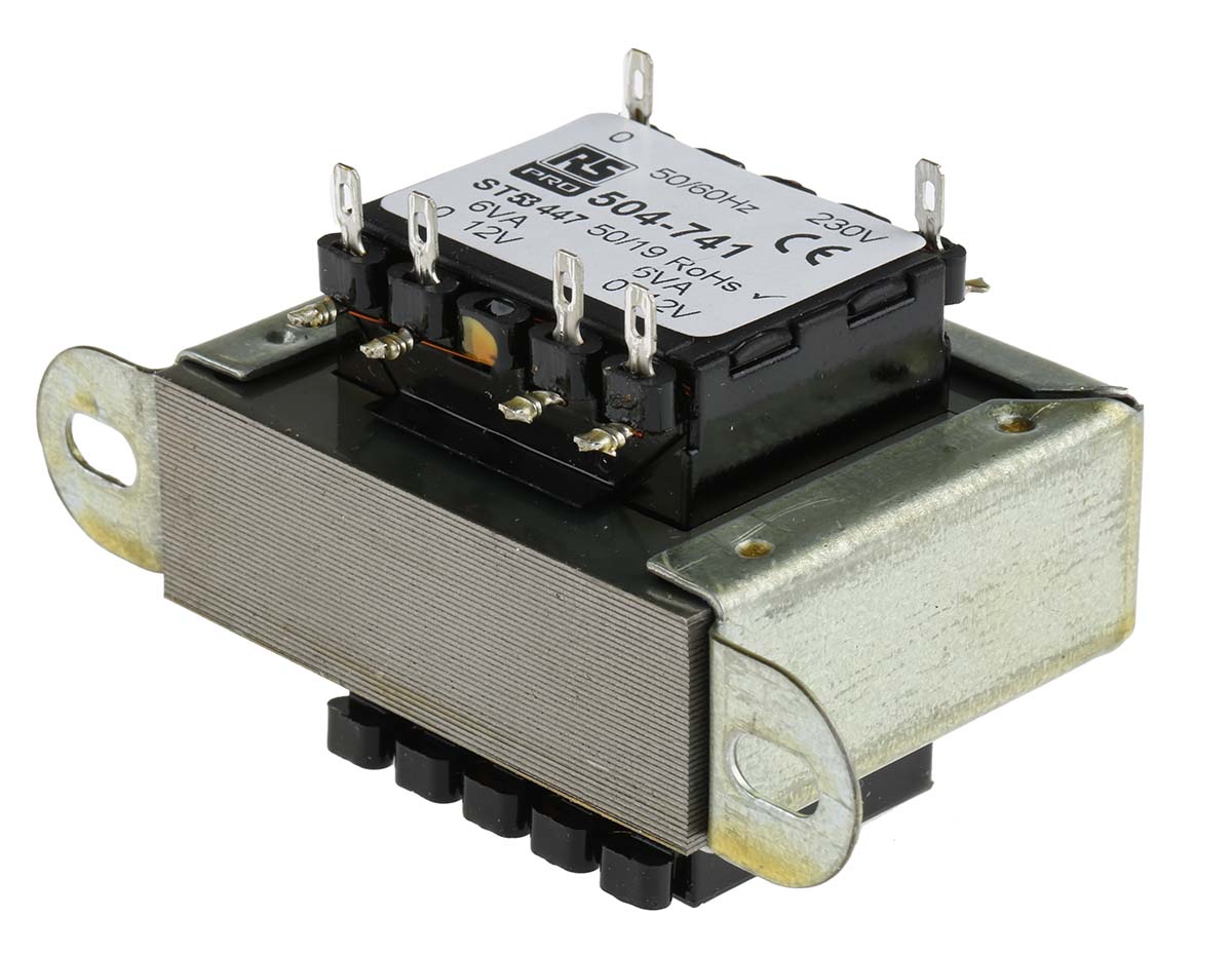 This is 12VA 2 Output Chassis Mounting Transformer 12V ac manufactured by RS Pro. The manufacturer part number is 504-741. Additionally, the product is supplied with 2 outputs. The given dimensions of the product include 59 x 50 x 50mm. The typical product's weight is 400g. It has about 230v ac primary voltage rating . Its accurate length is 59mm. It carries 60hz of maximum operating frequency. The diameter of the fixing hole is 4.7 x 8.7mm. Furthermore, the product is 50mm wide. The product comes in 50mm depth. In addition, it has a secondary 12v ac voltage rating . It has a minimum 50hz operating frequency . The product is available in clamp mount configuration. Feature 12va of power rating.