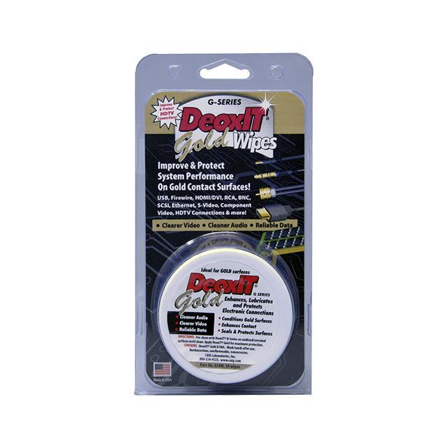 This is manufactured by CAIG Laboratories, Inc.. The manufacturer part number is G50FW. The product deoxit® g, is a highly preferred choice for users. The product is rohs3 compliant. It offers storage features at 120°f (49°c). In addition, bulk is the available packaging type of the product. The product is widely employed in contacts. Its typical moisture sensitivity level is 1 (unlimited). It has a long 2 weeks standard lead time. The caig laboratories, inc.'s product offers user-desired applications. It comes in wipes configuration. The product is available in 1.75" x 1.75" size.