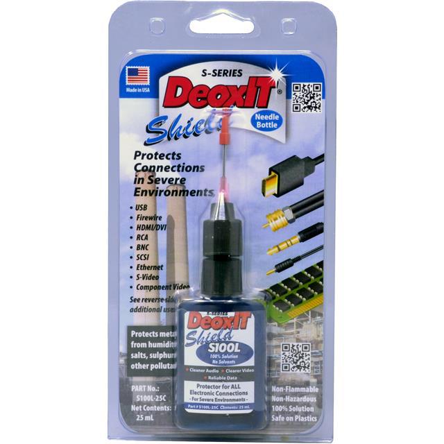 This is manufactured by CAIG Laboratories, Inc.. The manufacturer part number is S100L-25C. It is assigned with possible HTSUS value of 3403.19.5000. The product is rohs3 compliant. It comes in cleaner, lubricant configuration. The product is widely employed in contacts. It offers storage features at 120°f (49°c). The caig laboratories, inc.'s product offers user-desired applications. Its typical moisture sensitivity level is 1 (unlimited). It has a long 2 weeks standard lead time. The product deoxit® s, is a highly preferred choice for users. In addition, bulk is the available packaging type of the product. The product is available in 25ml size. The product is designated with the ear99 code number.