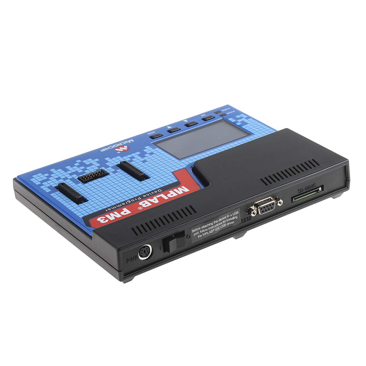 The MPLAB PM3 features an intuitive LCD and a straightforward keypad, providing clear status updates and easy control during programming. Engineers can manage projects, select devices, and monitor progress directly from the unit, no external tools required.