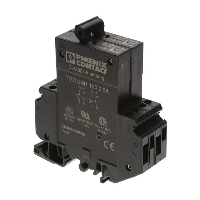 This is manufactured by Phoenix Contact. The manufacturer part number is 0914947. The product has a current rating of 500ma. Moreover, the product has a nominal 250v ac voltage rating. The product tmc, is a highly preferred choice for users. The product is available in din rail style. Furthermore, the product is 25mm wide. It has equipped with 2 poles. It is assigned with possible HTSUS value of 8536.20.0040. The product is rohs3 compliant. The product exhibits 250 v of AC voltage rating. In addition, it is reach affected. The phoenix contact's product offers user-desired applications. It is a type of thermal magnetic breaker. 65 v of DC voltage rating. It has a long 13 weeks standard lead time. Additionally, the product's output is 500ma. Its typical moisture sensitivity level is not applicable. The product is available in din rail configuration. In addition, bulk is the available packaging type of the product. The product carries lever actuator. The product is designated with the ear99 code number.