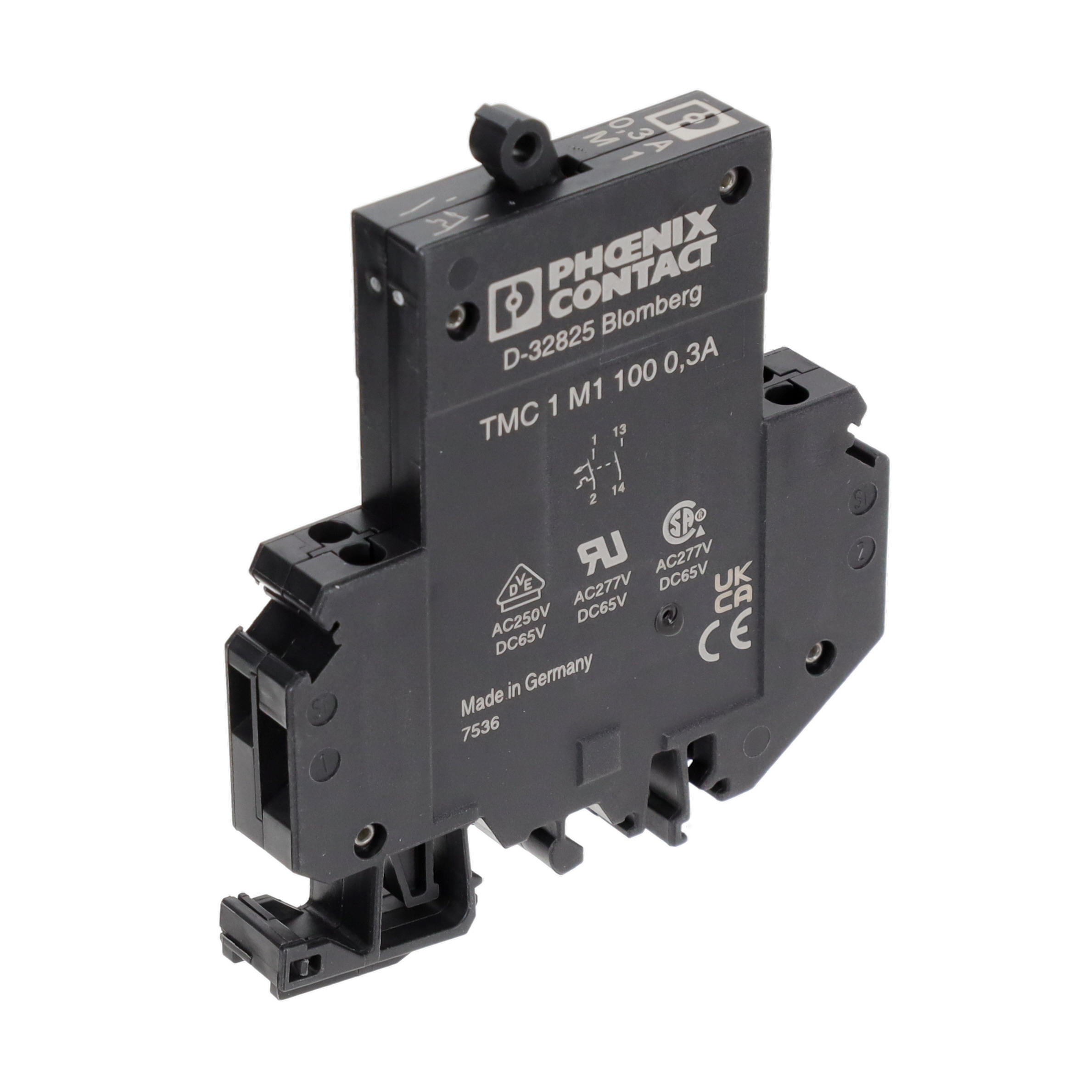 This is manufactured by Phoenix Contact. The manufacturer part number is 0914387. The product has a current rating of 300ma. Moreover, the product has a nominal 250v ac voltage rating. The product tmc, is a highly preferred choice for users. The product is available in din rail style. Furthermore, the product is 12.5mm wide. It has equipped with 1 poles. It is assigned with possible HTSUS value of 8536.20.0040. The product is rohs3 compliant. The product exhibits 250 v of AC voltage rating. In addition, it is reach affected. The phoenix contact's product offers user-desired applications. It is a type of thermal magnetic breaker. 65 v of DC voltage rating. It has a long 13 weeks standard lead time. Additionally, the product's output is 300ma. Its typical moisture sensitivity level is not applicable. The product is available in din rail configuration. In addition, bulk is the available packaging type of the product. The product carries lever actuator. The product is designated with the ear99 code number.