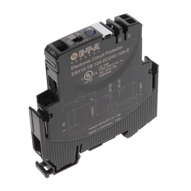 This is manufactured by E-T-A. The manufacturer part number is ESX10-TB-124-DC24V-10A-E. It is assigned with possible HTSUS value of 8536.30.8000. The product is rohs3 compliant. It is approved by atex, csa c22.2 no 14, ul2367, ul508, ul class i div 2. In addition, it is reach unaffected. It is shipped in bulk package . It is a type of solid state breaker. 32 v of DC voltage rating. It has a long 10 weeks standard lead time. Additionally, the product's output is 10a. Its typical moisture sensitivity level is not applicable. The product is available in din rail configuration. The product esx10-t, is a highly preferred choice for users. The product carries slide switch actuator. Is this product illuminated? green, orange, red. It has equipped with 1 poles. The product is designated with the ear99 code number.