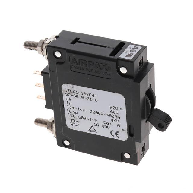 This is manufactured by Sensata-Airpax. The manufacturer part number is IELK1-1REC4-52-60.0-01-V. It is assigned with possible HTSUS value of 8536.20.0020. The product is rohs compliant. It is approved by ul1077. The product exhibits 80 v of AC voltage rating. The sensata-airpax's product offers user-desired applications. It is a type of magnetic (hydraulic delay) breaker. 80 v of DC voltage rating. It has a long 6 weeks standard lead time. Additionally, the product's output is 60a. Its typical moisture sensitivity level is 1 (unlimited). The product is available in panel mount configuration. The product iel, is a highly preferred choice for users. In addition, bulk is the available packaging type of the product. The product carries lever actuator. Is this product illuminated? none. It has equipped with 1 poles. Moreover, it corresponds to ielk1, a base product number of the product. The product is designated with the ear99 code number.