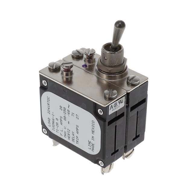 This is manufactured by Sensata-Airpax. The manufacturer part number is IUGN66-1-71-20.0. It is assigned with possible HTSUS value of 8536.20.0020. The product is rohs compliant. It is shipped in bulk package . It is a type of magnetic (hydraulic delay) breaker. It has equipped with 2 poles. It has a long 7 weeks standard lead time. Additionally, the product's output is 20a. Its typical moisture sensitivity level is 1 (unlimited). The product is available in panel mount configuration. The product iug, is a highly preferred choice for users. The product carries toggle actuator. Moreover, it corresponds to iugn66, a base product number of the product. The product is designated with the ear99 code number.