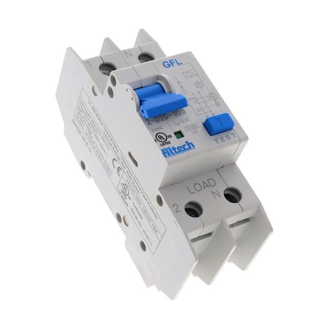 This is manufactured by Altech Corporation. The manufacturer part number is GFL2D201002. It is assigned with possible HTSUS value of 8536.20.0020. The product is rohs3 compliant. It is approved by culus, ul489. The product exhibits 240 v of AC voltage rating. In addition, it is reach unaffected. It is shipped in bulk package . It is a type of ground fault breaker. Additionally, the product's output is 20a. Its typical moisture sensitivity level is not applicable. The product is available in din rail configuration. The product gfl, is a highly preferred choice for users. The product carries lever actuator. Is this product illuminated? none. It has equipped with 1 poles. Moreover, it corresponds to gfl2d, a base product number of the product. The product is designated with the ear99 code number.