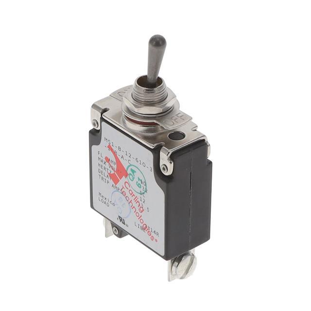 This is manufactured by Carling Technologies. The manufacturer part number is MS1-B-12-610-3-1CB-A-C. It is assigned with possible HTSUS value of 8536.20.0020. The product is rohs3 compliant. It is approved by ccc, curus, ul. The product exhibits 240 v of AC voltage rating. In addition, it is reach unaffected. It is shipped in bulk package . It is a type of magnetic (hydraulic delay) breaker. 65 v of DC voltage rating. It has a long 6 weeks standard lead time. Additionally, the product's output is 10a. Its typical moisture sensitivity level is 1 (unlimited). The product is available in panel mount configuration. The product ms, is a highly preferred choice for users. The product carries toggle actuator. Is this product illuminated? none. It has equipped with 1 poles. The product is designated with the ear99 code number.