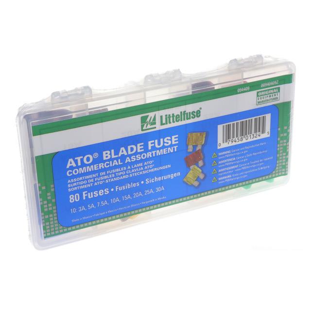 This is manufactured by Littelfuse Inc.. The manufacturer part number is 00940409Z. It is assigned with possible HTSUS value of 8536.10.0040. The product is rohs3 compliant. In addition, it is reach unaffected. It responds within fast blow. The littelfuse inc.'s product offers user-desired applications. Moreover, the product has a nominal 32vac, 32vdc voltage rating. Its typical moisture sensitivity level is 1 (unlimited). It has a long 16 weeks standard lead time. It also includes blade, ato/atc packages. Additionally, the product's output is 3 ~ 30a. Available in 80 pieces (8 values - 10 each) quantity. The automotive is designed to provide robust applications in a variety of specific settings. The product is available in holder configuration. The product ato®, is a highly preferred choice for users. In addition, box is the available packaging type of the product. The product is designated with the ear99 code number.