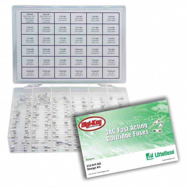 This is manufactured by Littelfuse Inc.. The manufacturer part number is 312P-KIT. The cartridge, glass is designed to provide robust applications in a variety of specific settings. The product is available in holder configuration. It is assigned with possible HTSUS value of 8536.10.0020. It is shipped in case package . The product 312, is a highly preferred choice for users. Moreover, the product has a nominal 250vac voltage rating. The product is not applicable. Its typical moisture sensitivity level is 1 (unlimited). The product is also supplied with clips. It responds within fast blow. Available in 140 pieces (28 values - 5 each) quantity. It also includes 3ag, 1 1/4" l x 1/4" dia (31.8mm x 6.4mm) packages. Additionally, the product's output is 0.062 ~ 10a. The product is designated with the ear99 code number.