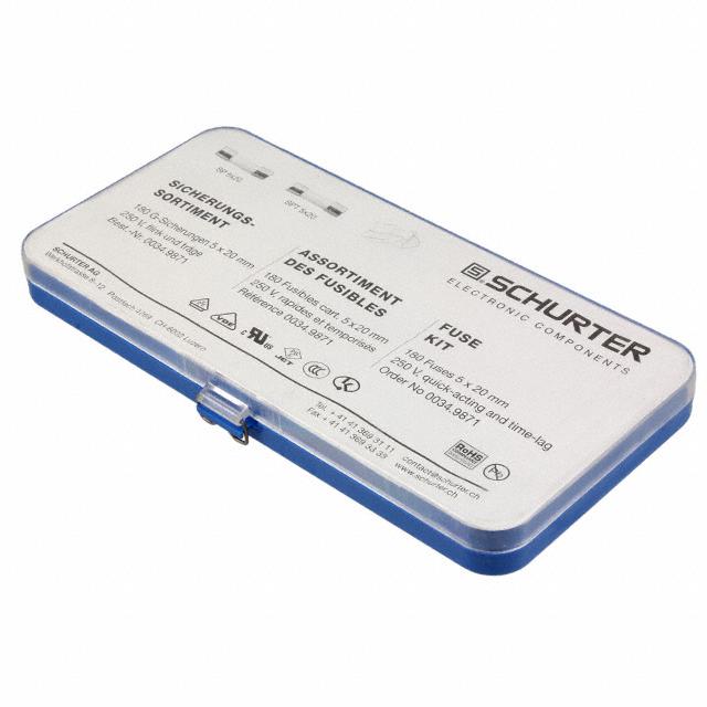 This is manufactured by Schurter Inc.. The manufacturer part number is 0034.9871. It is assigned with possible HTSUS value of 8536.10.0040. The product is rohs3 compliant. In addition, it is reach unaffected. It responds within fast blow, slow blow. The schurter inc.'s product offers user-desired applications. Moreover, the product has a nominal 250vac voltage rating. Its typical moisture sensitivity level is not applicable. It has a long 41 weeks standard lead time. It also includes 5mm x 20mm packages. Additionally, the product's output is 0.8 ~ 10a. Available in 180 pieces (18 values - 10 each) quantity. The cartridge, ceramic is designed to provide robust applications in a variety of specific settings. The product is available in holder configuration. The product sp, spt, is a highly preferred choice for users. In addition, case is the available packaging type of the product. The product is designated with the ear99 code number.