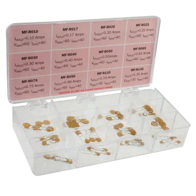 This is manufactured by Bourns Inc.. The manufacturer part number is MF-RLAB-L. It has typical 6 weeks of manufacturer standard lead time. Base Part Number: mf-rlab. It features ptc resettable fuse kit 0.05 ~ 1.1a 30vdc, 60vdc through hole 60 pieces (12 values - 5 each). The ptc resettable is designed to provide robust applications in a variety of specific settings. The product is available in through hole configuration. Moreover, the product has a nominal 30vdc, 60vdc voltage rating. The product multifuse®, mf-r, is a highly preferred choice for users. In addition, plastic box with bin guide is the available packaging type of the product. Available in 60 pieces (12 values - 5 each) quantity. It also includes radial, disc packages. Additionally, the product's output is 0.05 ~ 1.1a. The bourns inc.'s product offers user-desired applications.