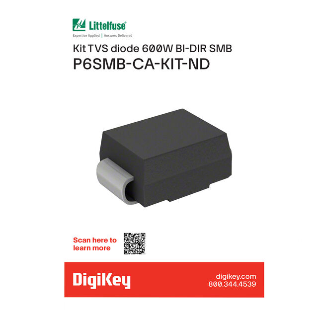 This is manufactured by Littelfuse Inc.. The manufacturer part number is 4879287. The littelfuse inc.'s product offers user-desired applications. The esd protection is designed to provide robust applications in a variety of specific settings. The product is available in surface mount configuration. It is assigned with possible HTSUS value of 8541.10.0080. The product p6smb, is a highly preferred choice for users. The product is rohs3 compliant. In addition, book is the available packaging type of the product. The nominal breakdown voltage of 6.8v ~ 550v. Its typical moisture sensitivity level is 1 (unlimited). The product is designated with the ear99 code number. It also includes do-214aa, smb packages. Moreover, it corresponds to 48792, a base product number of the product. Available in 180 pieces (36 values - 5 each) quantity.