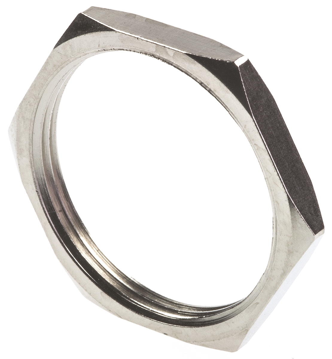 This is M18 Hex Nut manufactured by Lumberg. The manufacturer part number is 0384. The product is made from highly stable and reliable brass. It is a type of connector nut accessory.