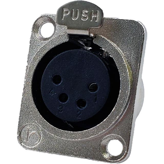 This is manufactured by IO Audio Technologies. The manufacturer part number is IO-XLR4-F-JL. It is assigned with possible HTSUS value of 8536.69.4020. The product is rohs3 compliant. The product's mounting feature includes flange. The product has -40°c ~ 70°c operating temperature range. The product carries possible position value of 4. It has nice contact finishing of silver. Furthermore, the product is shielded with unshielded. Moreover, the product has a nominal 125vac voltage rating. Additionally, the product's output is 10a. The product is widely employed in audio, aviation, communication systems. The basic product material is metal. It carries ul94 v-0 of material flammability rating. It is shipped in tray package . The insert's size is xlr. receptacle, female sockets Connector type offer robust functionality. Its typical moisture sensitivity level is not applicable. Furthermore, latch lock is the Fastening Type of the product. It is made from highly reliable zinc die cast materials. The product features solder cup termination style. It has a long 12 weeks standard lead time. While it is also supplied with highly stable polyamide (pa), nylon insert material. The product has a keyed orientation. The splendid features of the product include ground. The product is available in panel mount configuration. The shell is an excellent finishing of nickel. It has a classic silver colour. The product jl, is a highly preferred choice for users. The product is made from sturdy phosphor bronze materials. The product is designated with the ear99 code number.