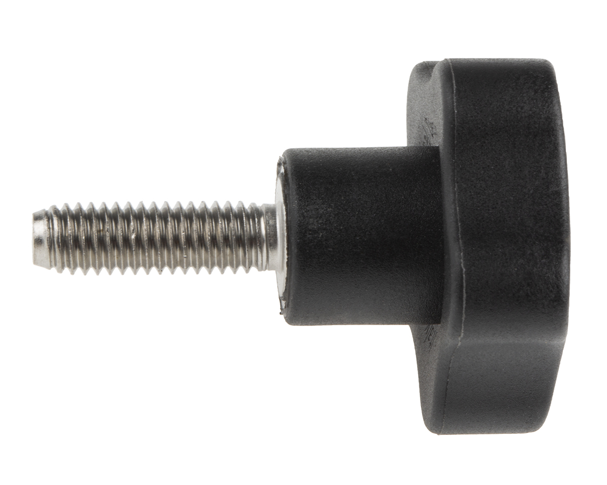 This is Black Polymer Knob M6 x 20 manufactured by Elesa. The manufacturer part number is 166263. Its overall knob diameter is about 32mm . The product is available in threaded stud configuration. It has a standard m6 thread . The product has an attractive multiple lobes shape knob . It has a decent black colour. It has a standard 6mm thread diameter . Features a thread length of 20mm. While it is also supplied with highly stable stainless steel insert material.