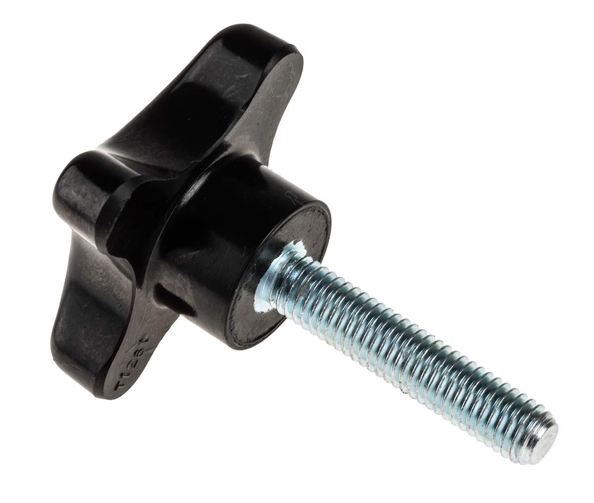 This is Black Phenolic Knob M8 x 40 manufactured by RS Pro. The manufacturer part number is 686-654. Its overall knob diameter is about 50mm . It has a standard m8 thread . The product is available in threaded stud configuration. The product has an attractive 4-arm shape knob . It has a decent black colour. It has a standard 8mm thread diameter . Features a thread length of 40mm. While it is also supplied with highly stable alloy insert material.