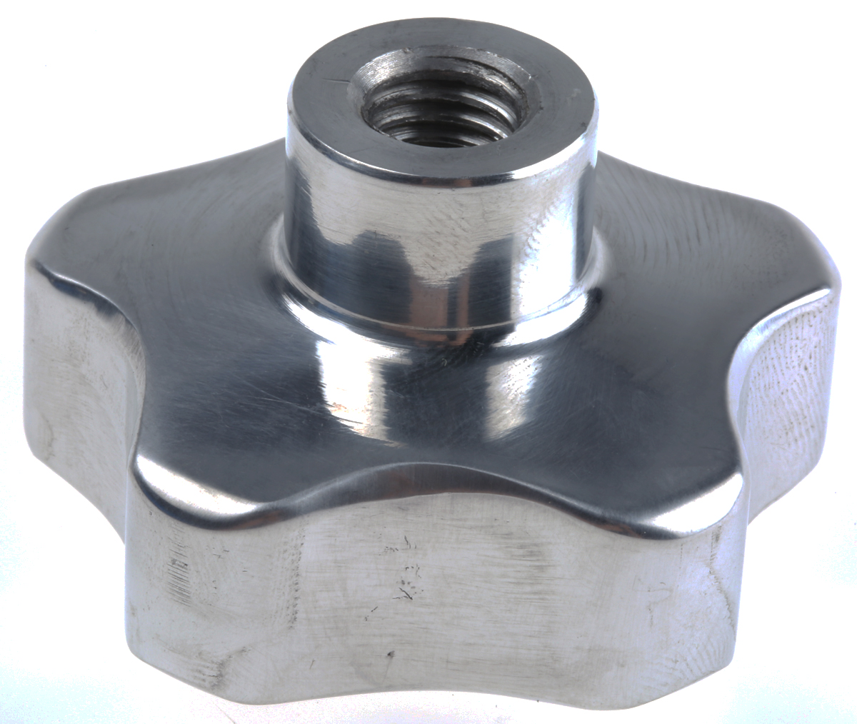 This is Aluminium Knob M10 x 25 manufactured by RS Pro. The manufacturer part number is 478-523. Its overall knob diameter is about 50mm . The product is available in threaded hole configuration. It has a standard m10 thread . The product has an attractive multiple lobes shape knob . It has a decent silver colour. It has a standard 10mm thread diameter . Features a thread length of 25mm.