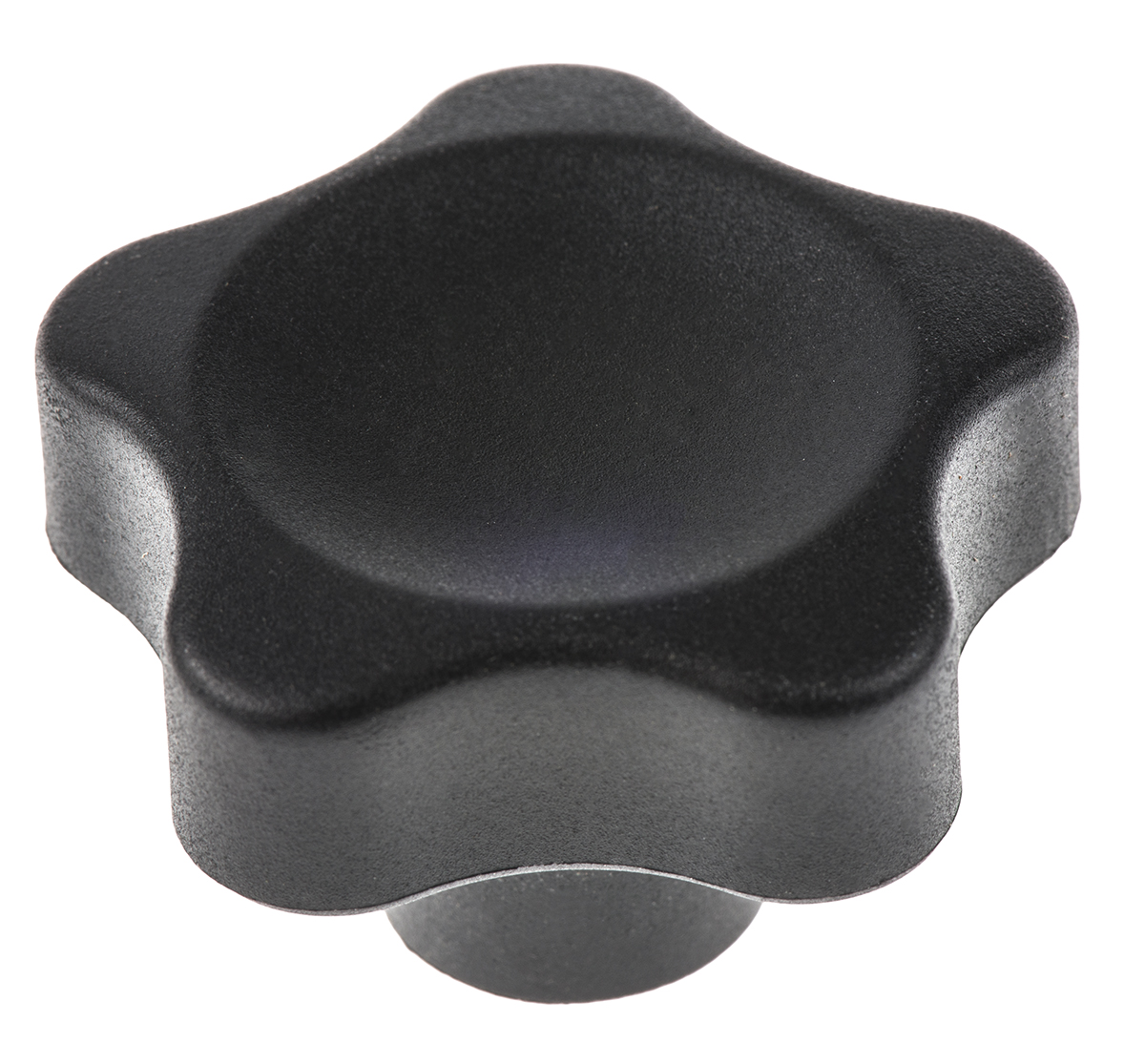 This is Black Polymer Knob M8 x 13 manufactured by Elesa. The manufacturer part number is 166346. Its overall knob diameter is about 40mm . The product is available in threaded hole configuration. It has a standard m8 thread . The product has an attractive multiple lobes shape knob . It has a decent black colour. It has a standard 8mm thread diameter . Features a thread length of 13mm. While it is also supplied with highly stable stainless steel insert material.