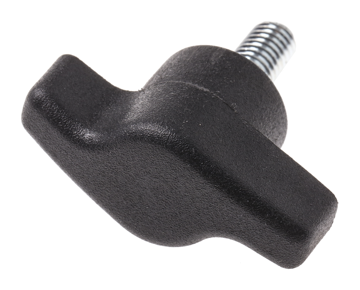 This is Black Polyamide Knob M6 x 15 manufactured by RS Pro. The manufacturer part number is 478-434. Its overall knob diameter is about 35mm . It has a standard m6 thread . The product is available in threaded stud configuration. The product has an attractive wing shape knob . It has a decent black colour. Features a thread length of 15mm. While it is also supplied with highly stable steel insert material. It has a standard 6mm thread diameter .