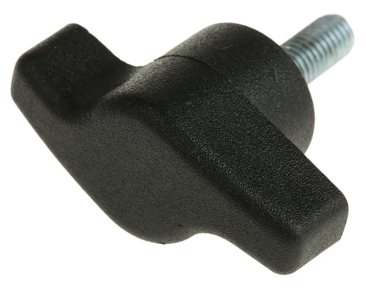 This is Black Polyamide Knob M5 x 15 manufactured by RS Pro. The manufacturer part number is 478-466. Its overall knob diameter is about 35 mm . The product has an attractive male offset wing shape knob . It has a decent black colour. The product's body is nicely designed from thermoplastic materials. Features a thread length of 15mm. clamping knob is a versatile product designed to provide user-defined applications. While it is also supplied with highly stable zinc plated steel insert material. It has a threaded stud type mount .