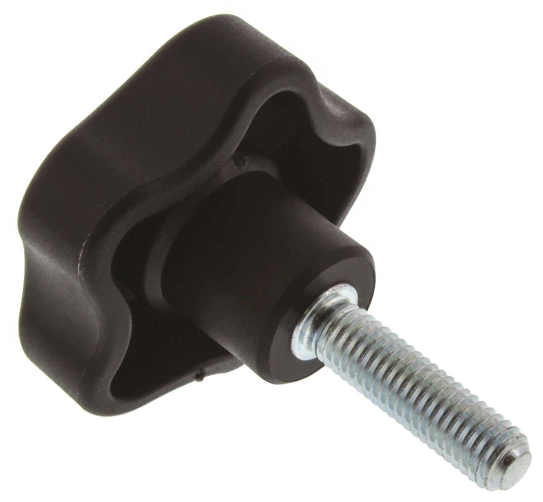 This is Black Polymer Knob M8 x 30 manufactured by Elesa. The manufacturer part number is 69963. Its overall knob diameter is about 50mm . It has a standard m8 thread . The product is available in threaded stud configuration. The product has an attractive multiple lobes shape knob . It has a decent black colour. Features a thread length of 30mm. While it is also supplied with highly stable steel insert material. It has a standard 8mm thread diameter .