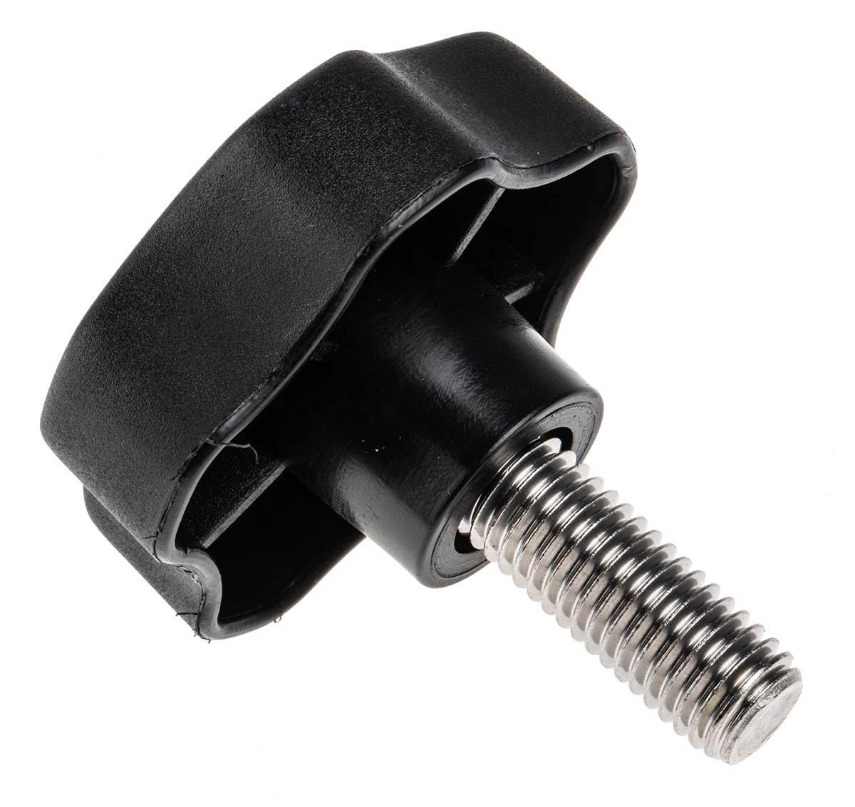 This is Black Thermoplastic Knob M12 x 30 manufactured by RS Pro. The manufacturer part number is 702-7658. Its overall knob diameter is about 60mm . It has a standard m12 thread . The product is available in threaded stud configuration. The product has an attractive multiple lobes shape knob . It has a decent black colour. It has a standard 12mm thread diameter . Features a thread length of 30mm. While it is also supplied with highly stable stainless steel insert material.