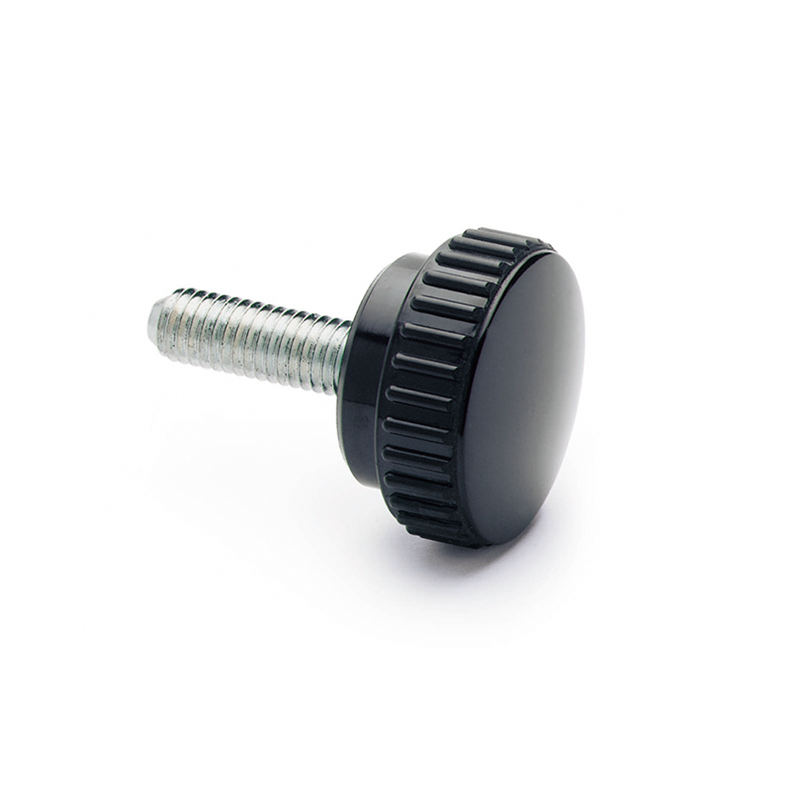 This is Black Duroplast Round Knob M4 x 16 Threaded Stud manufactured by Elesa. The manufacturer part number is 2123. It has a standard m4 x 16 thread . The product is available in threaded stud configuration. The product has an attractive round shape knob . It has a decent black colour. The product's body is nicely designed from duroplast materials. It has a standard 15mm thread diameter . Features a thread length of 11mm.