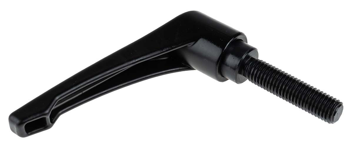 This is Clamp Lever M12 manufactured by RS Pro. The manufacturer part number is 478-850. Moreover, it has a standard 50mm thread/insert length . It has a male gender thread . It has a decent black colour. Its comfortable handle is manufactured from durable die cast zinc material. It has a typical thread size of m12. Its shaft material is steel . Its accurate length is 92mm. In addition, it has a clamping lever type lever .