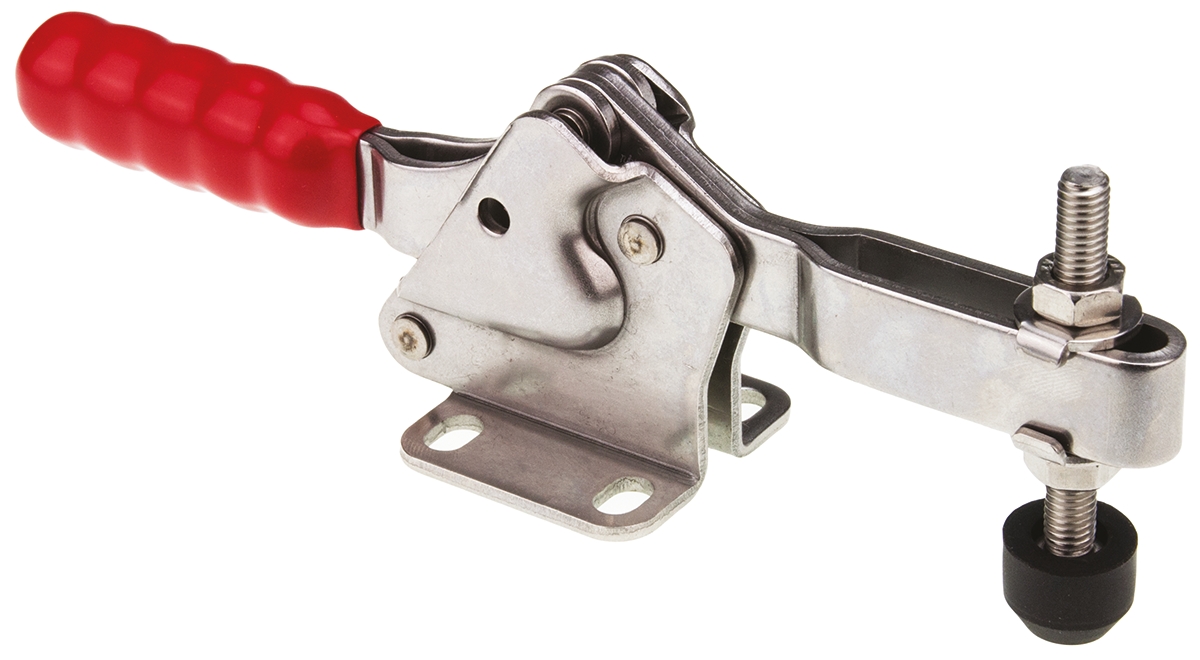 This is 94° x 25.1mm Horizontal Toggle Clamp manufactured by RS Pro. The manufacturer part number is 254-771. Equipped with a 94° jaw opening. The typical product's weight is 245g. In addition, Its jaw is 20mm in depth . It comes in horizontal toggle clamp configuration. It has about 1500n operating tension .
