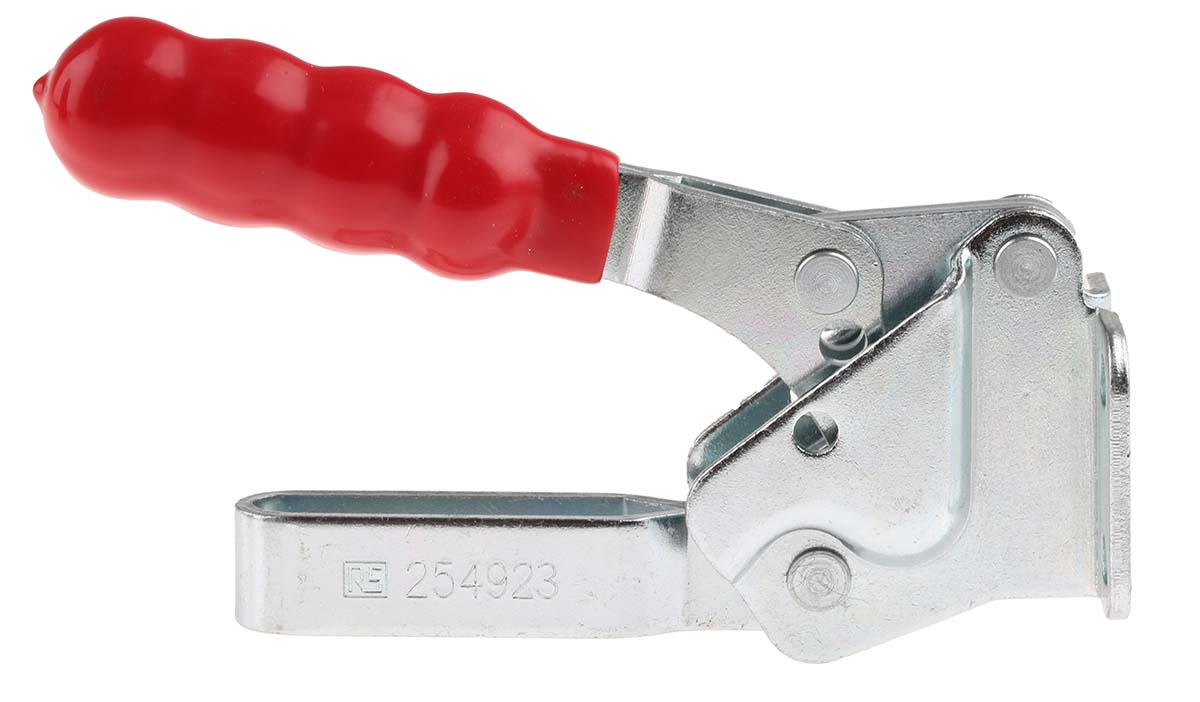 This is 94° x 34mm Horizontal Toggle Clamp manufactured by RS Pro. The manufacturer part number is 254-923. Equipped with a 94° jaw opening. The typical product's weight is 434g. It comes in horizontal toggle clamp configuration. It has about 2500n operating tension .