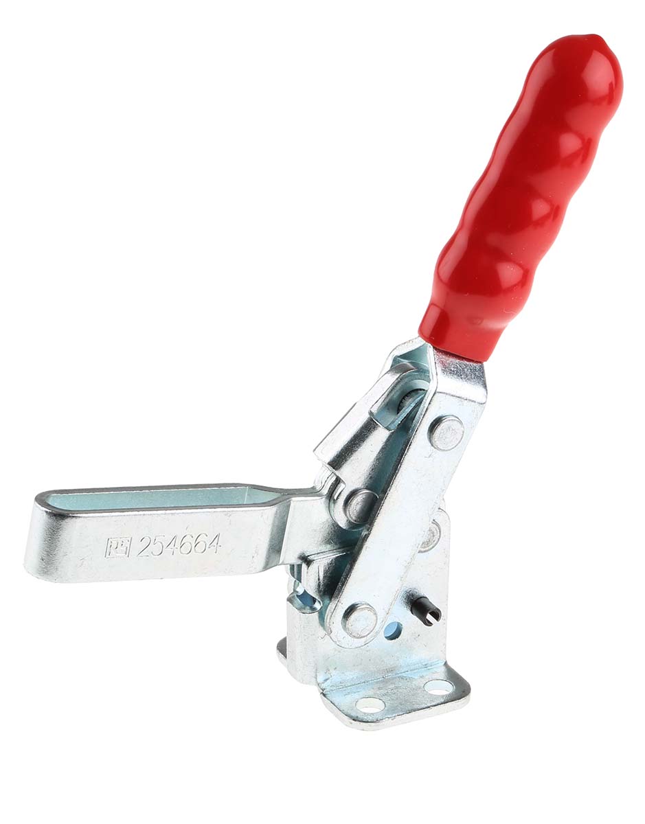 This is 90 → 150° x 32mm Vertical Toggle Clamp manufactured by RS Pro. The manufacturer part number is 254-664. Equipped with a 90° →150° jaw opening. It has about 2500n operating tension . It comes in vertical toggle clamp configuration. The typical product's weight is 435g.