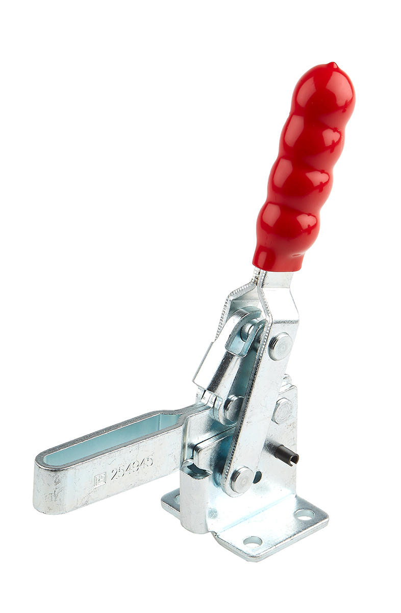 This is 90 → 180° x 43mm Vertical Toggle Clamp manufactured by RS Pro. The manufacturer part number is 254-945. Equipped with a 90° jaw opening. It has about 3500n operating tension . It comes in vertical toggle clamp configuration. The typical product's weight is 800g.
