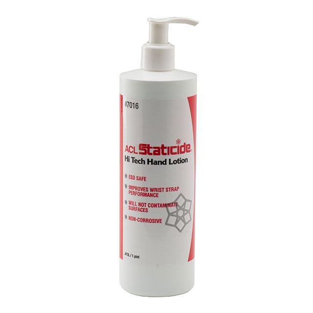 This is manufactured by ACL Staticide Inc. The manufacturer part number is 7016. It is assigned with possible HTSUS value of 3307.90.0000. The product is rohs3 compliant. The product's typical Applications include uses in moisturizing, static dissipation. Specifications include non-acidic, silicone free. In addition, it is reach unaffected. It is shipped in bottle package . Its typical moisture sensitivity level is not applicable. It has a long 6 weeks standard lead time. Available in 16 ounce quantity. The product acl staticide®, is a highly preferred choice for users. The product type and treatment include lotion, hand. The product is designated with the ear99 code number.