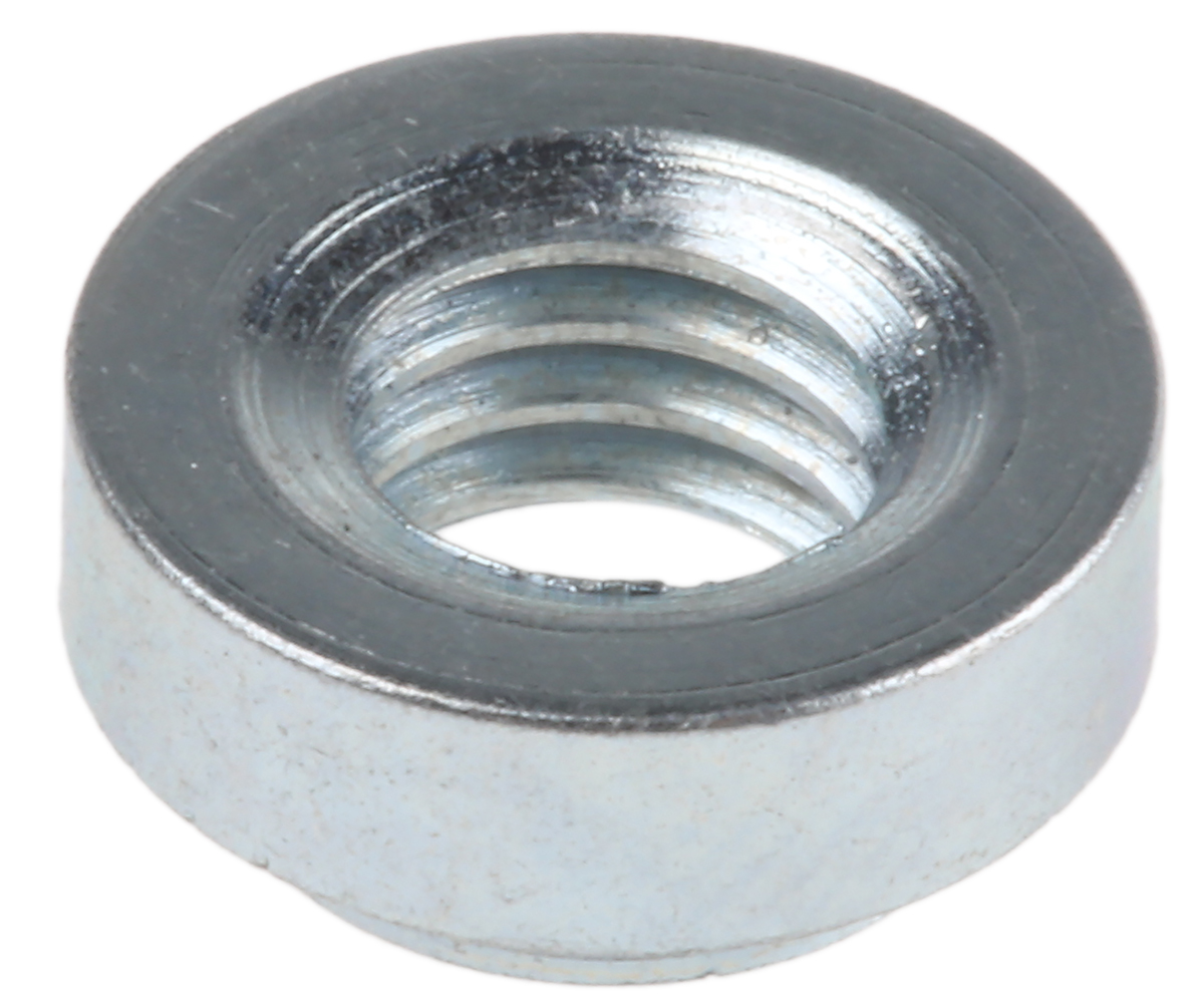 This is Clear Passivated Zinc Steel Clinch Nut M5 manufactured by RS Pro. The manufacturer part number is 827-669. The diameter of the fixing hole is 6.35mm. A quality product with a nice clear passivated, zinc finish. The product has a standard 1.5mm minimum thickness of material . The product is made from highly stable and reliable steel. It has a typical thread size of m5. Whereas, the thickness of material maximum is 2.3mm . It has about 8.7mm outside body diameter . Its body depth is round about 2.4mm .