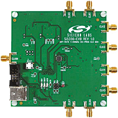 This is Silicon Labs Clock Generator Evaluation Board for Si5356 manufactured by Skyworks Solutions Inc. The manufacturer part number is Si5356-EVB. Featured Device si5356. Moreover, it has a standard clock generator clock/timer function . The kit is classified as evaluation board.