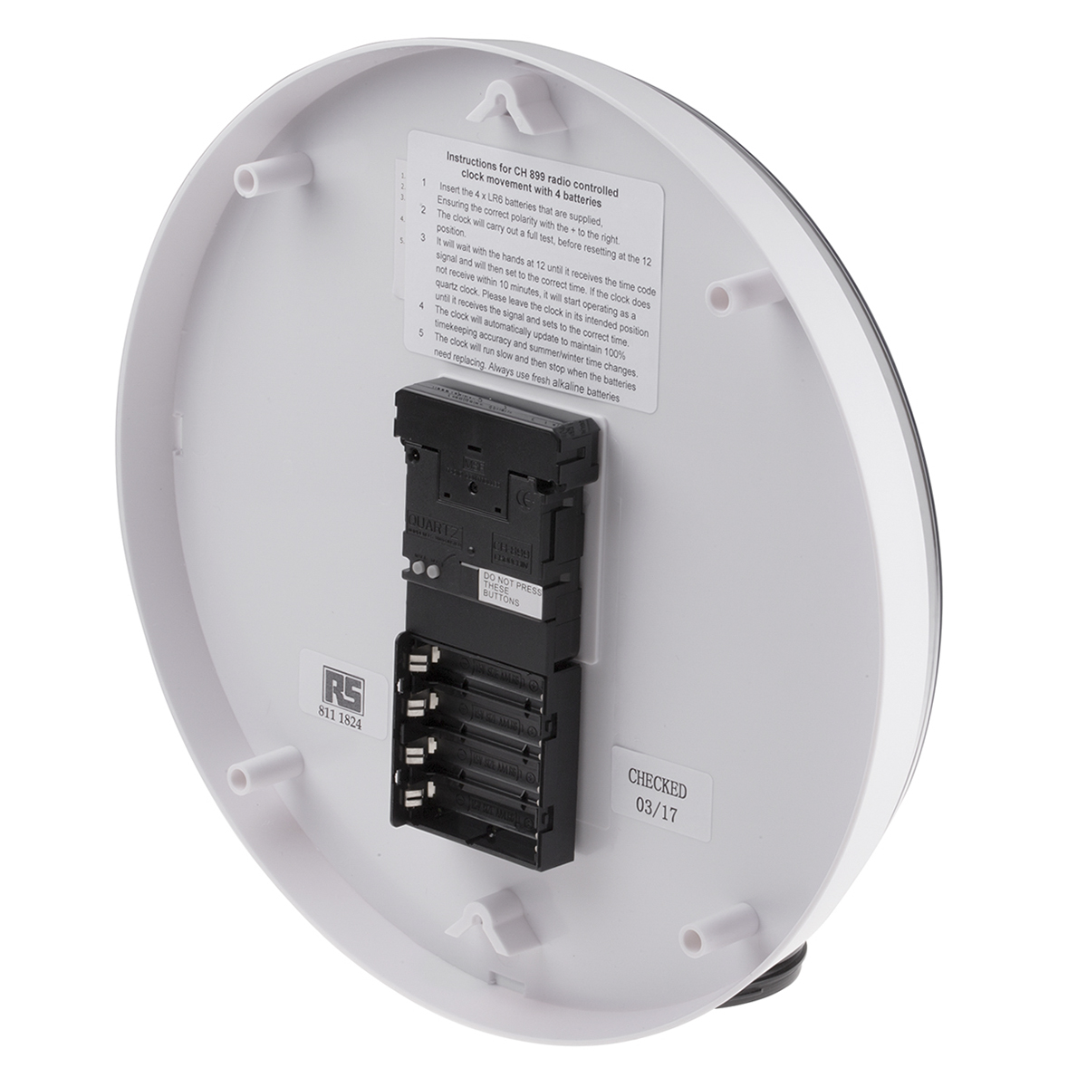 This is Radio Controlled White Wall Clock 300mm manufactured by RS Pro. The manufacturer part number is 811-1824. Its diameter is 300 mm. In addition, the product is shatterproof yes . It has a standard aa size battery . The typical product's weight is 600g. It is analogue . It has a radio controlled quality yes . It has a decent white colour. The product is made from highly stable and reliable plastic. The casing is constructed from highly stable plastic material. It is a round product with unique specifications. Moreover, the product gets power from battery. The product comes in 40mm depth. With 4 battery quantity . The product includes batteries yes . clock is a versatile product designed to provide user-defined applications. It has a wall type mount .
