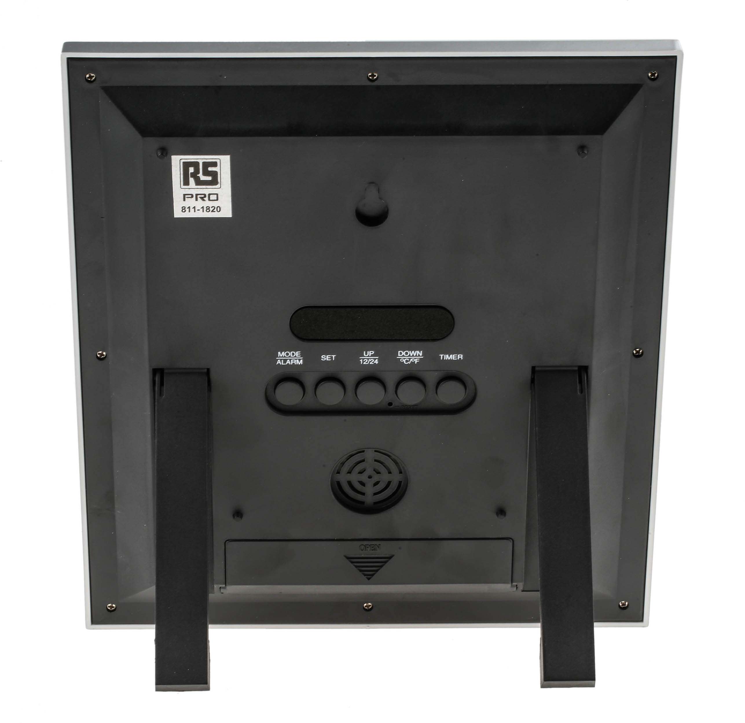 This is Silver Digital Wall Clock manufactured by RS Pro. The manufacturer part number is 811-1820. It has a standard aa size battery . The typical product's weight is 420g. Additionally, it has to be fixed on wall . The product includes battery yes . The product is made from highly stable and reliable plastic. The casing is constructed from highly stable plastic material. In addition, the height is 250mm. Furthermore, the product is 220mm wide. The product comes in 23mm depth. With 2 battery quantity . It has a standard silver colour/finish . This aa battery is comparatively much efficient than common batteries. Moreover, the product features a/an digital display . Moreover, the product gets power from battery.