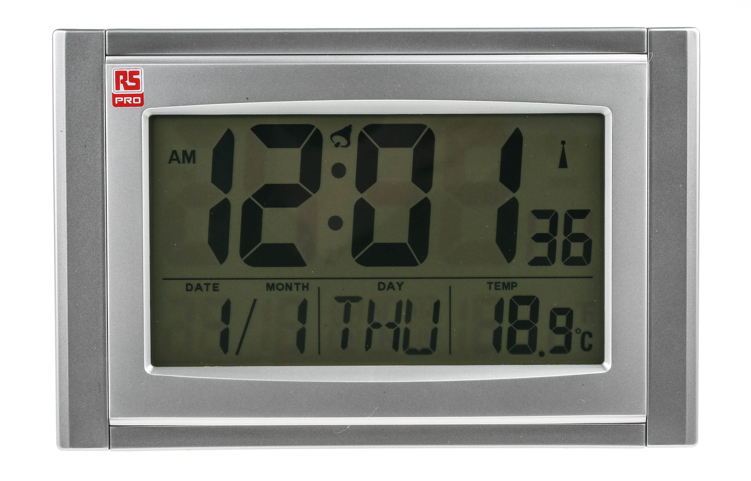 This is Radio Controlled Silver Digital Wall Clock manufactured by RS PRO. The manufacturer part number is 811-1827. Moreover, the product gets power from battery. It has a standard aa size battery . Additionally, it has to be fixed on wall . It has a radio controlled quality yes . The product includes battery yes . The product is made from highly stable and reliable plastic. The casing is constructed from highly stable plastic material. In addition, the height is 155mm. Furthermore, the product is 240mm wide. The product comes in 35mm depth. With 1 battery quantity . It has a standard silver colour/finish . Moreover, the product features a/an digital display .