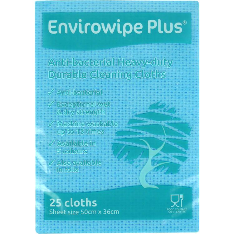 This is Envirowipe Plus Blue Polyester Viscose Rayon Cloths for Cleaning Wet & Dry Use Box of 150 50 x 36cm Repeat manufactured by EcoTech. The manufacturer part number is EWPF150B. It is assigned with a trade name of envirowipe plus. It is designed for repeat use . It is wet & dry . It has a decent blue colour. Its cloth material is made up of polyester, viscose rayon . Applications Information involves cleaning. The package is a sort of box. Its wiper is 50 x 36cm in size . It contains 150 wipes per pack . It is tailored with heavy-duty cloth features .