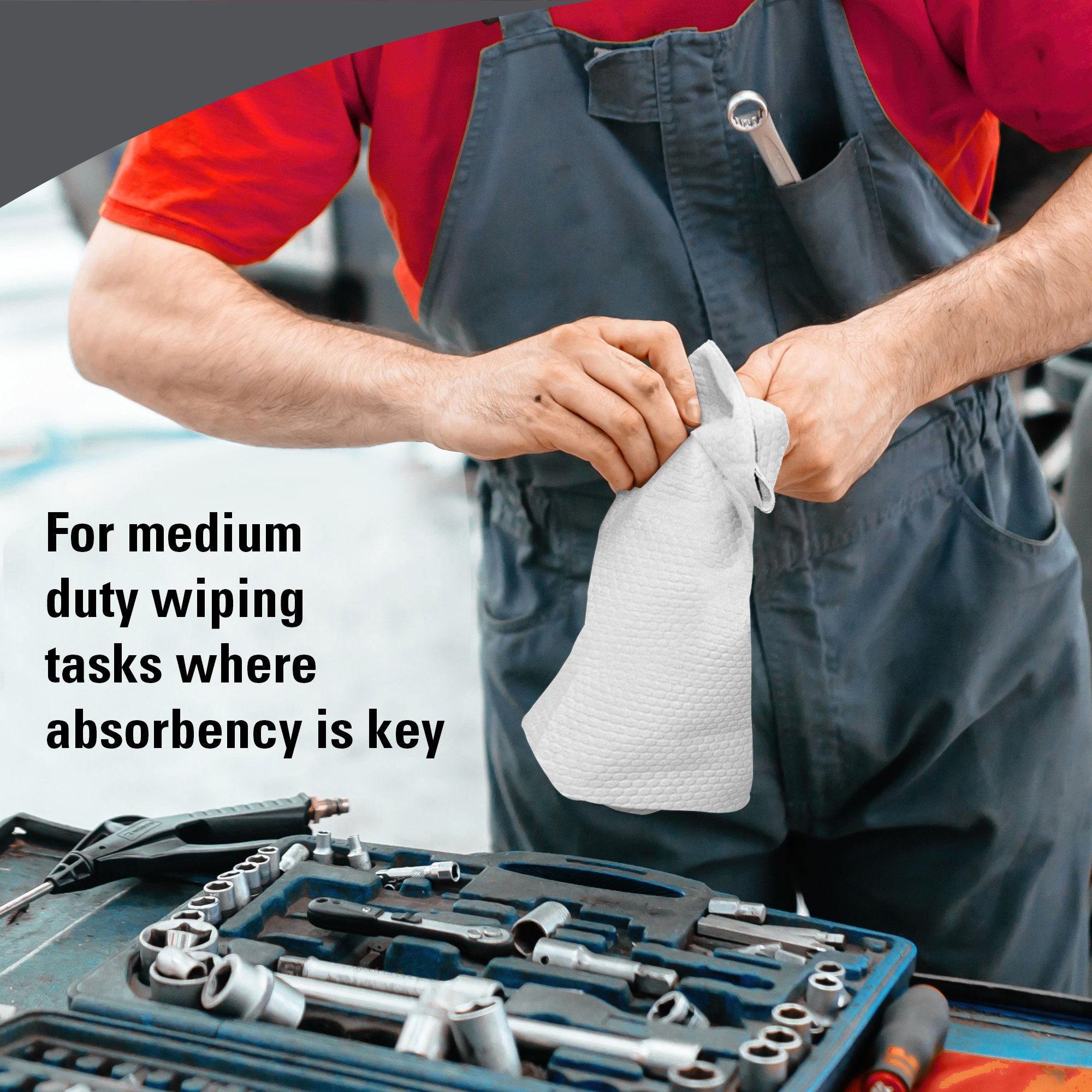 This is WypAll® X70 Power Clean™ 8387 White Cloths for Industrial Cleaning Dry Use Box of 76 305 x 318mm Repeat Use manufactured by WYPALL. The manufacturer part number is 8387003. It is assigned with a trade name of wypall x70 power clean 8387. It is designed for repeat use . It is dry . It has a decent white colour. Applications Information involves industrial cleaning. It contains 76 per pack item per package . The package is a sort of box. Its wiper is 305 x 318 mm in size . cloths is a versatile product designed to provide user-defined applications.