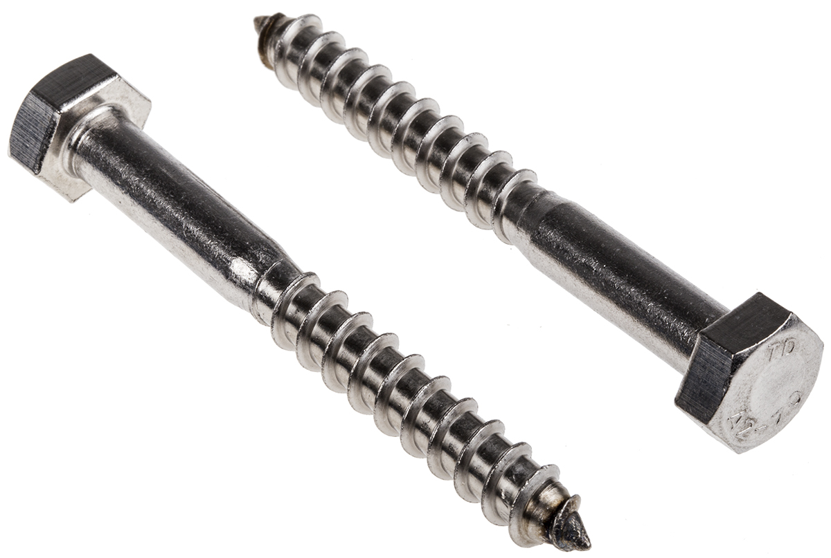 This is Hex Stainless Steel Wood Screw A2 304 8mm Thread manufactured by RS Pro. The manufacturer part number is 144-3554. The stainless steel is a a2 304. The product complies with all safety standards, such as din 571. The head has a hex shape. The product is made from highly stable and reliable stainless steel. It has a typical thread size of 8mm. Its accurate length is 70mm.
