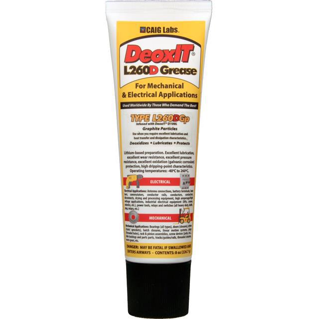 This is manufactured by CAIG Laboratories, Inc.. The manufacturer part number is L260-DG8. The splendid features of the product include lubricant. The product is designed as a nice jar, 7.972 oz (226g). It has a classic amber colour. The product deoxit®, is a highly preferred choice for users. The product is rohs3 compliant. Its typical moisture sensitivity level is 1 (unlimited). Its warranty starts from date of manufacture. In addition, bulk is the available packaging type of the product. The product is highly reliable with a long-lasting period of 60 months. It has a long 2 weeks standard lead time. It comes in lithium grease configuration. The caig laboratories, inc.'s product offers user-desired applications.