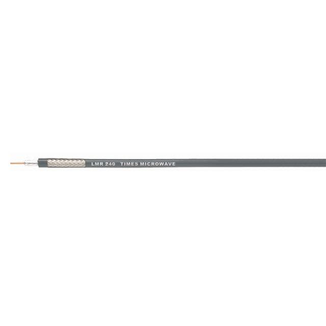This is manufactured by Amphenol Times Microwave Systems. The manufacturer part number is LMR-240-DB. It is assigned with possible HTSUS value of 8544.20.0000. The product is rohs compliant. Its jacket is made from highly insulated polyethylene (pe) materials. Its dielectric diameter includes 0.150" (3.81mm). The product has -40°c ~ 85°c operating temperature range. Moreover, the product is constructed from highly foam polyethylene (fpe) dielectric material. Bears 83 propagation's velocity. It also features a solid conductor strand. It has an impedance value of 50 ohms. It is shipped in digi-spool®, continuous spool package . The item is shielded with a braid. Its typical moisture sensitivity level is 1 (unlimited). Its accurate length is enter number of feet in order quantity. The spool comes in 500.0' (152.4m) size. It has a long 6 weeks standard lead time. The splendid features of the product include direct burial, watertight. The diameter of the jacket is 0.240" (6.10mm). The conductor is made from copper, bare material. The product lmr®, is a highly preferred choice for users. It is a typical coaxial cable. The product is shielded with a robust aluminum; copper, tinned shield materials. The product is designated with the ear99 code number. Moreover, it corresponds to lmr-240, a base product number of the product. It comes in nice black colour.