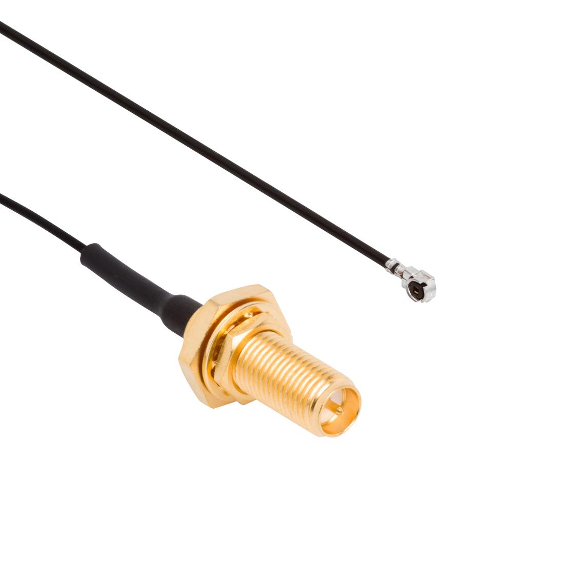 This is manufactured by Amphenol RF. The manufacturer part number is 336320-12-0350. Additionally, the product is designed with u.fl (umcc), amc to rp-sma Style. The second integral connector has a free hanging (in-line) mounting configuration. It is assigned with possible HTSUS value of 8544.20.0000. The product is rohs3 compliant. While the second one is a female type. It first connector includes rp-sma jack. The second connector is u.fl (umcc), amc plug, right angle. In addition, it is reach affected. It maximum frequency is 6 ghz. The amphenol rf's product offers user-desired applications. It features an overall impedance value of 50 ohms. Its typical moisture sensitivity level is 1 (unlimited). Its accurate length is 13.78" (350.00mm). The first contact is a male type. It has a long 12 weeks standard lead time. It is IP rated with ip67 - dust tight, waterproof. It has a classic black colour. It is a typical 1.13mm od coaxial cable cable. The first connector has a bulkhead - front side nut mounting feature. In addition, bag is the available packaging type of the product. The first connector is configured with a panel mount mounting type. Moreover, it corresponds to 336320, a base product number of the product. The product is designated with the ear99 code number.