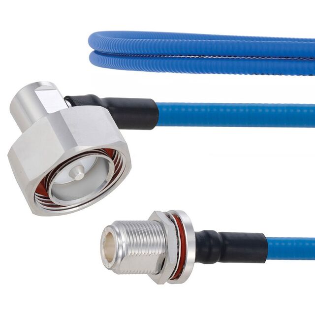 This is manufactured by Fairview Microwave. The manufacturer part number is FMCA1867-24. Additionally, the product is designed with 7/16 din to n-type Style. The second integral connector has a panel mount mounting configuration. While the second one is a female type. It first connector includes 7/16 plug, right angle. The product has -55°c ~ 200°c operating temperature range. The second connector is n-type jack. It has 50 ohms impedance rate. It has a 50 ohms cable impedance. It maximum frequency is 5.8 ghz. The fairview microwave's product offers user-desired applications. It features an overall impedance value of 50 ohms. Its typical moisture sensitivity level is 1 (unlimited). Its accurate length is 24.00" (609.60mm). The first contact is a male type. It has a long 4 weeks standard lead time. It has a classic blue colour. It is a typical spp-250llpl cable. In addition, bag is the available packaging type of the product. While the second connector has a bulkhead - front side nut mounting style. The first connector is configured with a free hanging (in-line) mounting type.