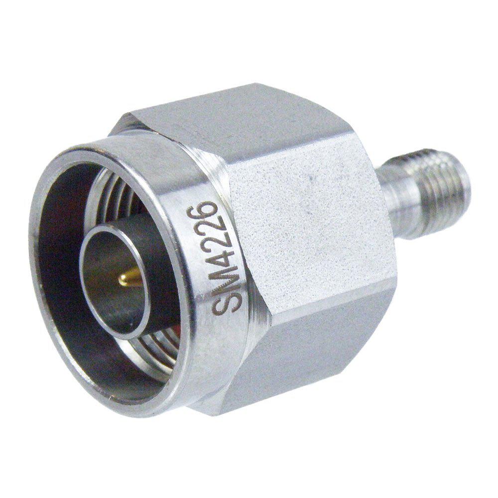 This is manufactured by Fairview Microwave. The manufacturer part number is SM4226. Additionally, the product is designed with straight Style. The product is rohs3 compliant. It has conversion specifications from sma jack, female socket. Its center comes as a female to male. The beryllium copper material is utilised for designing its center contacts. The product has -55°c ~ 100°c operating temperature range. Moreover, the product is constructed from highly polytetrafluoroethylene (ptfe) dielectric material. The adapter has a sma to n series. The center contact is plated with a [Center Contract Plating]. Can effectively be converted to n plug, male pin. It maximum frequency is 18 ghz. It has an impedance value of 50 ohms. It is shipped in bulk package . Its typical moisture sensitivity level is 1 (unlimited). The product's body is nicely designed from stainless steel materials. Furthermore, threaded, threaded is the Fastening Type of the product. It provides best efficiency with mating cycles of 500. The product is available in free hanging (in-line) configuration. Features between series conversion type. The adapter is a plug to jack.