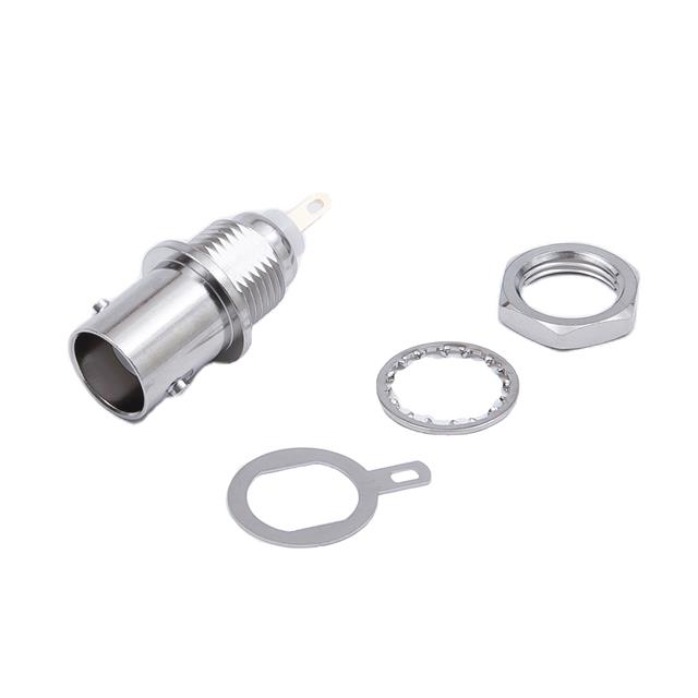 This is manufactured by To-Conne Co., Ltd. (TYC). The manufacturer part number is BNC-BR Diecast. It is assigned with possible HTSUS value of 8536.69.4000. The product's mounting feature includes bulkhead - rear side nut. The phosphor bronze material is utilised for designing its center contacts. The product has -40°c ~ 85°c operating temperature range. It comes in bnc connector style. The body is galvanized with nice finishing of nickel. The center contact is plated with a [Center Contract Plating]. It has a solder shield termination. It maximum frequency is 1 ghz. It has an integral silver housing colour. It has an impedance value of 50 ohms. Moreover, the product has a nominal 500 v voltage rating. plug, male pin Connector type offer robust functionality. This product features 1 number of ports. The product's body is nicely designed from zinc die cast materials. Furthermore, bayonet lock is the Fastening Type of the product. The product is available in panel mount configuration. In addition, retail package is the available packaging type of the product. It also incorporates solder eyelet contact terminals. The product is designated with the 3a001 code number.