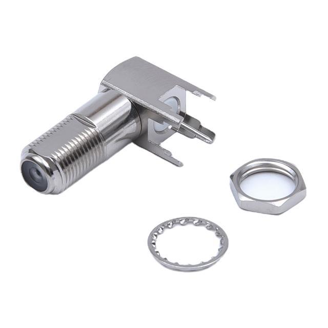 This is manufactured by To-Conne Co., Ltd. (TYC). The manufacturer part number is F-224LR-CA. It has a solder shield termination. It is assigned with possible HTSUS value of 8536.69.4000. The product is rohs compliant. The product's mounting feature includes bulkhead - front side nut. The brass, phosphor bronze material is utilised for designing its center contacts. The product has -40°c ~ 60°c operating temperature range. It comes in f type connector style. The body is galvanized with nice finishing of nickel. The center contact is plated with a [Center Contract Plating]. Moreover, the product has a nominal 150 v voltage rating. It maximum frequency is 3 ghz. It has an integral silver housing colour. It has an impedance value of 75 ohms. It is shipped in retail package package . receptacle, female socket Connector type offer robust functionality. This product features 1 number of ports. The product's body is nicely designed from brass materials. Furthermore, threaded is the Fastening Type of the product. The product is available in panel mount, through hole, right angle configuration. It also incorporates solder contact terminals. The product is designated with the ear99 code number.