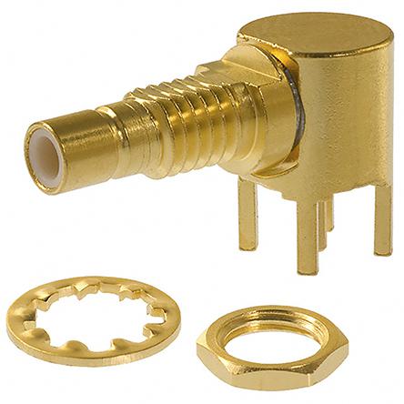 This is SMBSeries Right Angle PCB Mount SMB Connector 50Ω Impedance Solder Termination Bulkhead Fitting manufactured by Cinch Connectors. The manufacturer part number is 131-3701-341. The product is made from sturdy brass materials. It is a type of quick connect mating. The product is available in pcb mount configuration. In addition, female is the available "Gender" of the product. It has right angle body orientation. It allows solder termination method. This coaxial connector is a type of smb connector. It has a bulkhead yes . The high-quality gold over nickel over copper is used as contact plating material. The product smb, is a highly preferred choice for users. Furthermore, the product has 0 to 4ghz operating frequency range. It has an impedance value of 50ω. It carries [Serial Number] serial number. The body is gold over nickel over copper plated for adorable look and strength.